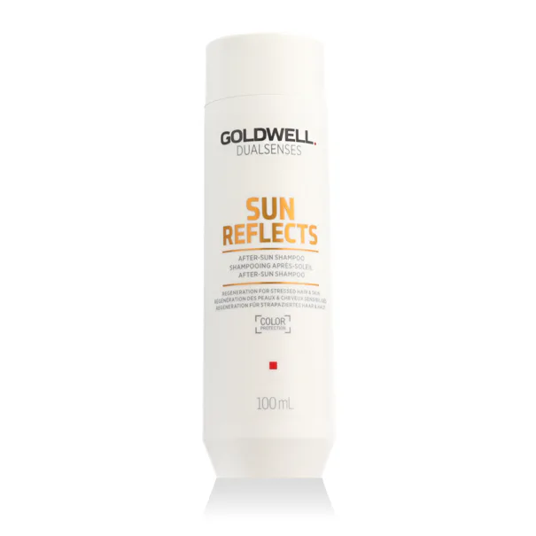 Goldwell Dualsenses Sun Reflects After-Sun Shampoo 100 ml è uno shampoo doposole delicato che deterge delicatamente rimuovendo i residui di sale, cloro, crema solare e impurità dopo l'esposizione al sole. È stato progettato per lenire, idratare e rafforzare i capelli stressati dai raggi UV, aiutando a ripristinare il loro equilibrio naturale e la loro lucentezza.