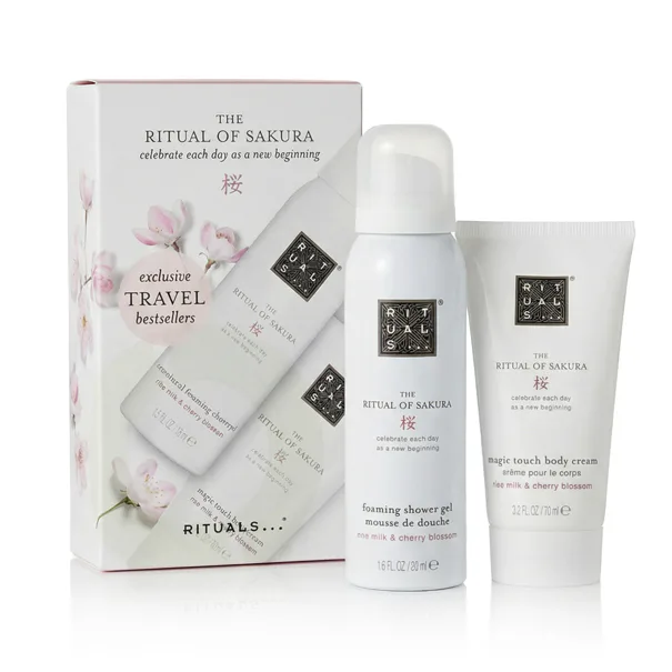 Rituals The Ritual of Sakura Celebrate Each Day As A New Beginning Trial Set Mini 2026 è un lussuoso set regalo che porta armonia, dolcezza e gioia nella cura quotidiana del corpo. Ispirato al profumo dei fiori di ciliegio e del latte di riso, questo set di bellezza è il modo perfetto per scoprire la gamma preferita in una pratica confezione mini. Il set comprende un doccia schiuma da 50 ml e una crema corpo da 70 ml, che insieme creano un rituale completo per la cura della pelle.